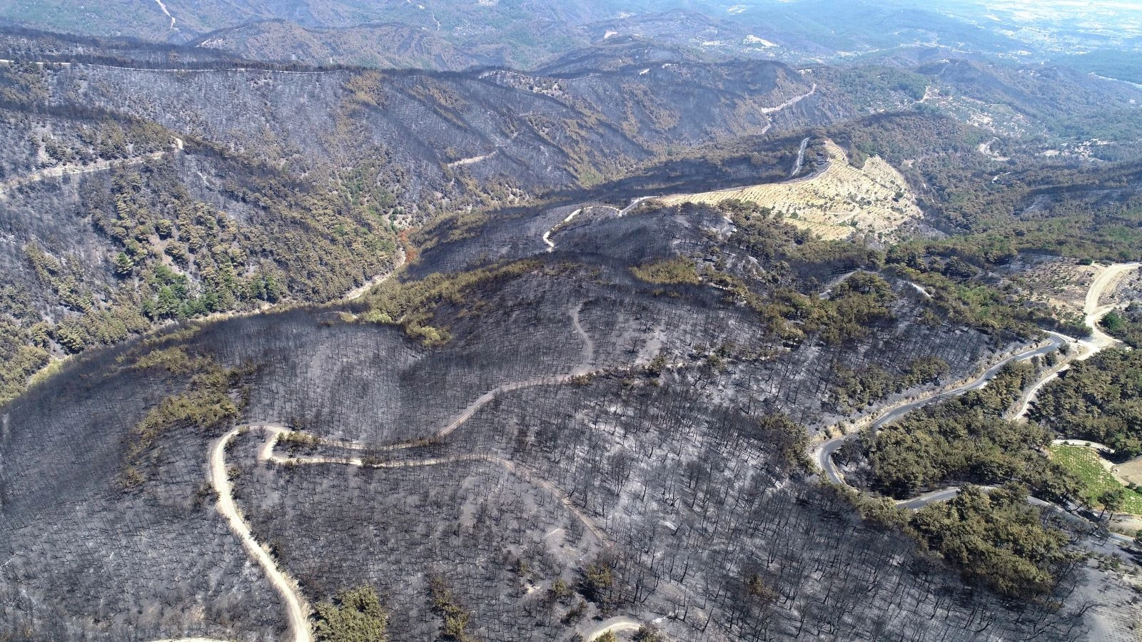 Yaklaşık 700 futbol sahası büyüklüğünde bir alanda etkili olan yangında onlarca yıllık çam ağaçları tamamen yanarken geriye kömürleşmiş bedenleri ve külleriyle kaplı araziler kaldı. Yanan alandaki bazı üzüm bağları da zarar gördü.