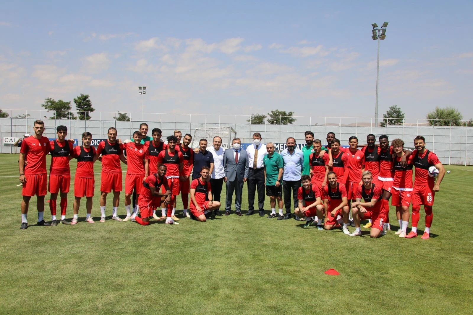 Yiğidolar’ın, Vali Lütfullah Bilgin Sivasspor Tesisleri’nde yaptığı antrenmanda takımla bir araya gelen Vali Ayhan, Kulüp Başkanı Mecnun Otyakmaz, 2. Başkan Erdal Sarılar, Teknik Direktör Rıza Çalımbay ve futbolcularla sohbet ederek, kırmızı-beyazlı takıma Petrocub maçında başarı dileklerini iletip, sporculara baklava ikram etti.