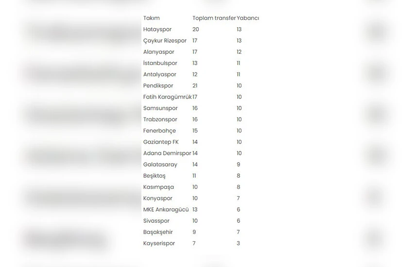 Takımlara göre yabancı futbolcu transferleri şöyle: