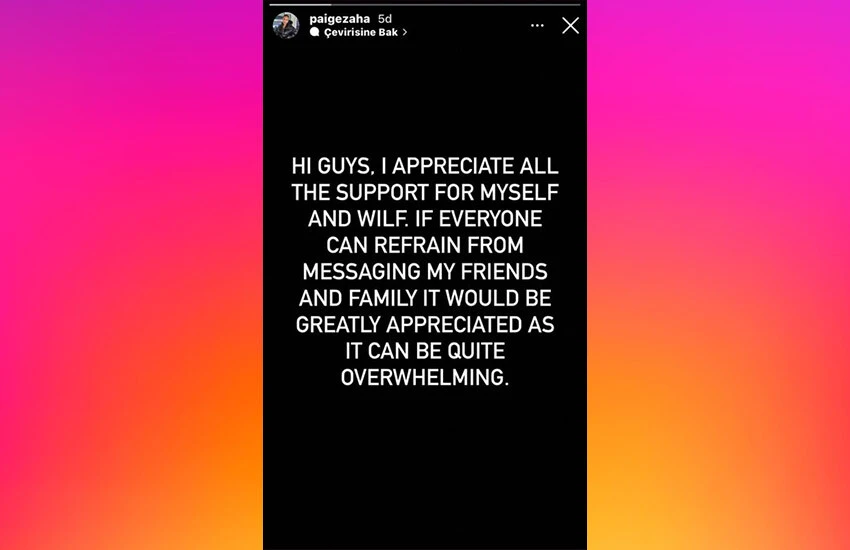 Fenerbahçe taraftarının ilgisine teşekkür eden Paige Zaha, “Arkadaşlarıma ve aileme mesaj atmayı bırakırsanız harika olur” açıklamasını yaptı.
