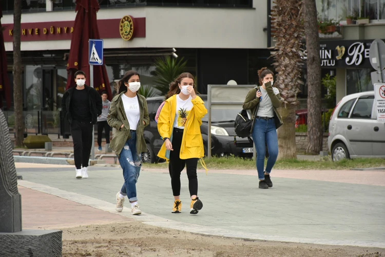 Arkadaşlarıyla dışarı çıkan gençler, sosyal mesafe kuralına uygun davranmaya çalıştı.