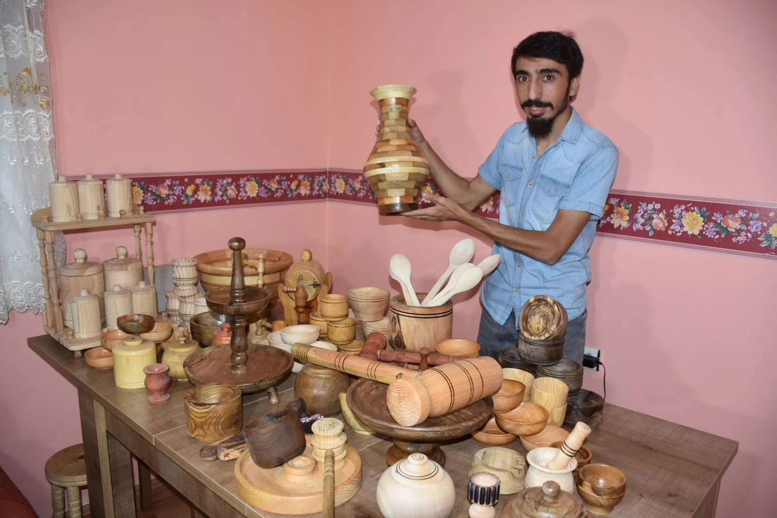 Afyon Kocatepe Üniversitesi Mimari Restorasyon Ön Lisans Bölümünden mezun olan ve Kırıkkale Üniversitesi İktisat Bölümünde eğitim hayatına devam eden Kemal Cesur (23), "İmkanlarım çok kısıtlı öncelikle onu söyleyeyim. 3 metrekare büyüklüğündeki evimizin kiler diye tabir ettiğimiz yerinde 2 tane tezgahım var. Genelde orada çalışıyorum. Tezgahımın geri kalanı da bahçemizde" dedi.