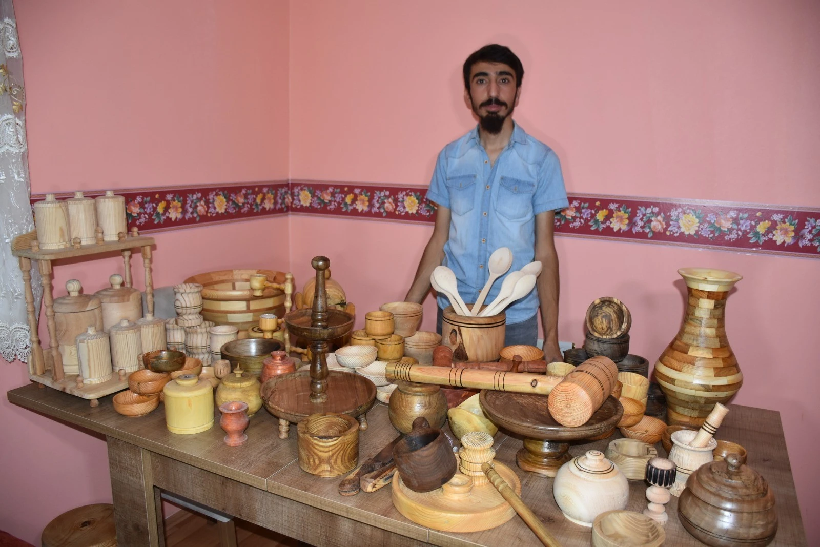 Kırıkkale’de üniversite öğrencisi Kemal Cesur (23), evinin 3 metrekare alandaki kilerini mini atölyeye dönüştürdü. İnşaatlardan aldığı eski keresteleri el emeği göz nuru ile işleyerek, yaptığı ev ve dekoratif hediyelik eşyalarını internet üzerinden satışını yaparak eğitimi için maddi kazanç sağlıyor.
