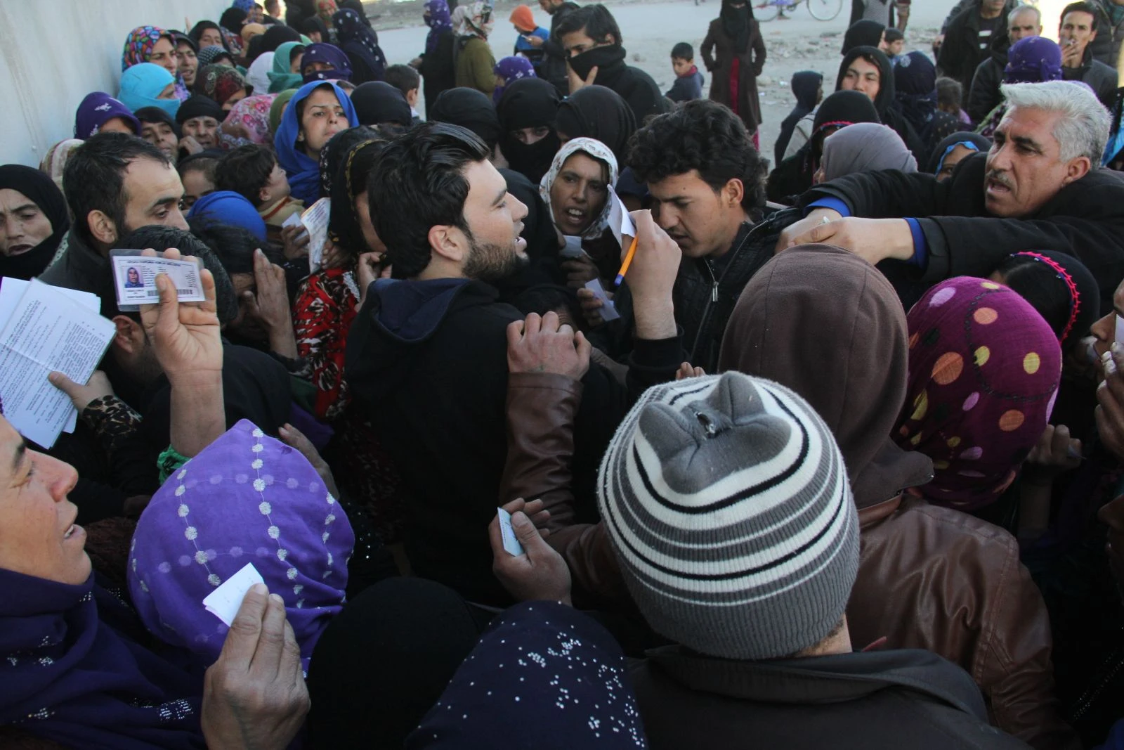 Bunu duyan Suriyeli mülteciler, mahallede belirtilen yere gidip isim yazdırmak için izdihama neden oldu. Çocuklarıyla birlikte gelen mülteciler arasında tartışmalar yaşandı.