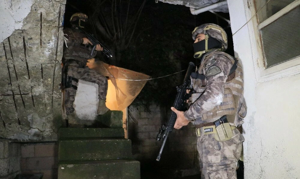 Özel harekat polislerinin de destek verdiği operasyonda ekipler, şüphelilerin evlerine, kapıları koç başıyla kırarak girdi.