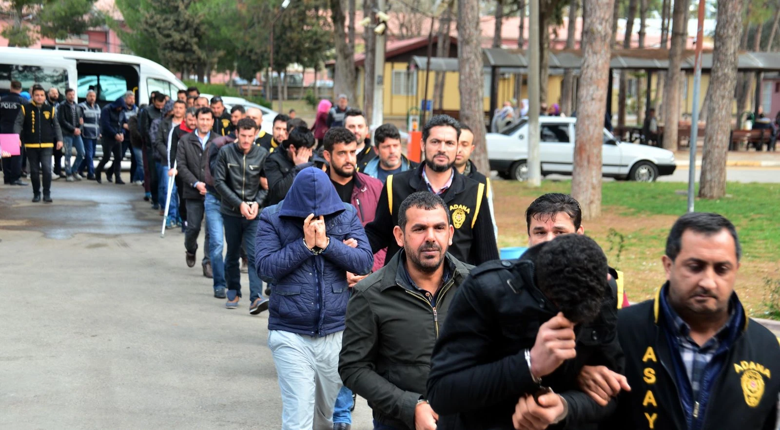 Sorgularının ardından sağlık kontrolünden geçirilmek üzere otobüsle adli tıp birimine getirilen zanlılar, adli tıpa alınırken "Hadi içeri girelim hep bizi çekiyorlar" diye basın mensuplarına tepki gösterdi. 2 zanlı kadının ise sürekli gülmesi dikkat çekti. Zanlılar sağlık kontrolünden sonra adliyeye götürüldü.