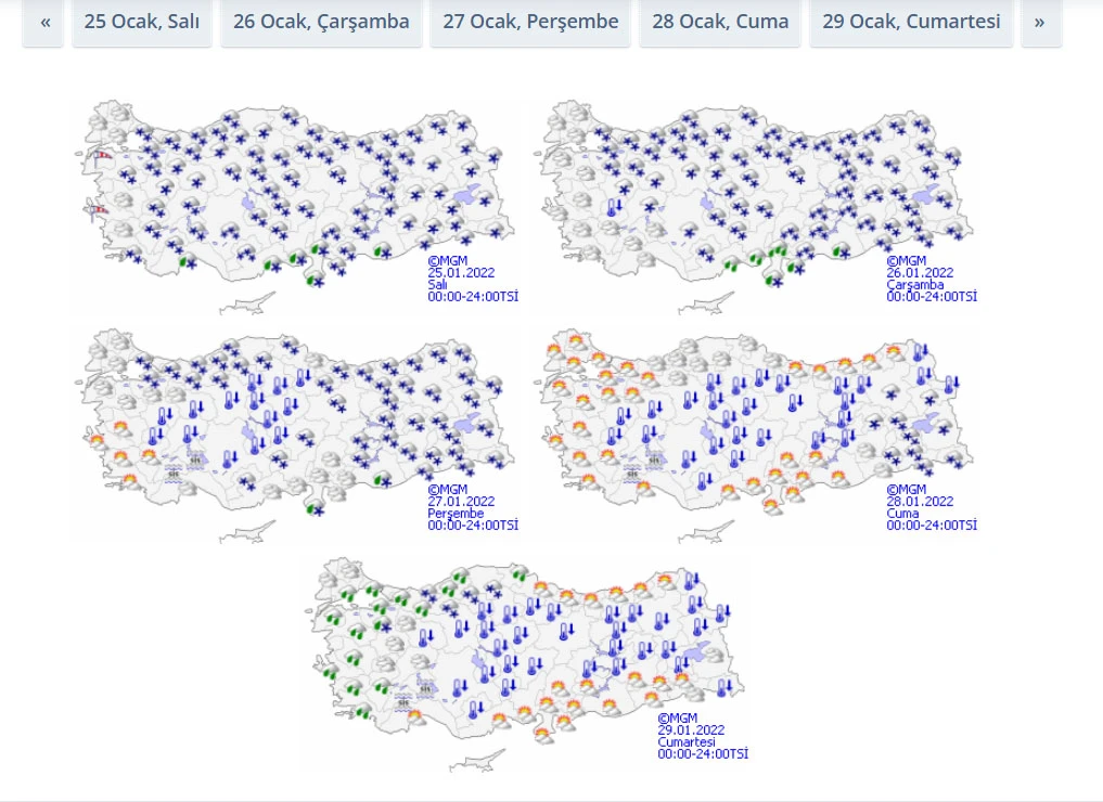 Ülke genelinde yaşanan olumsuz hava koşulları nedeniyle vatandaşlardan meteorolojik uyarıları takip ederek zorunlu olmadıkça yola çıkmamalarını istedi. Kar yağışının cuma gününe kadar aralıklarla etkili olması bekleniyor.