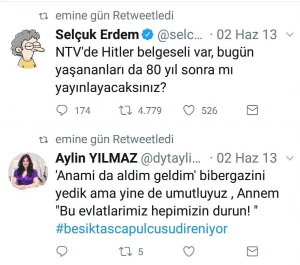 O avukat Emine Gün'ün 2013 Haziran'ındaki yani Gezi Parkı eylemleri zamanında sosyal medya paylaşımları da dikket çekti.