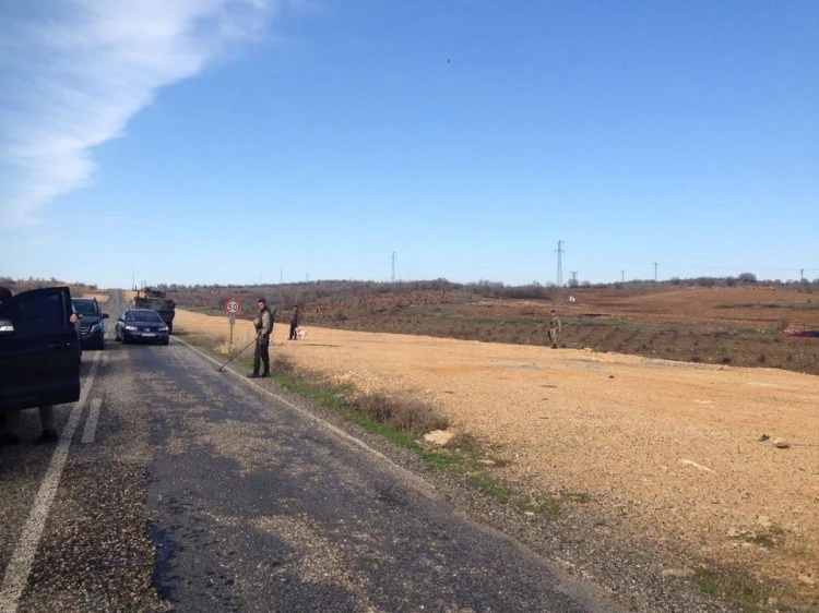 Yarım saat kadar bekledik, geçişe ihtiyatlı bir şekilde izin verildi. Askerler ise mayın aramaya devam ettiğini gördük. Tarihe kayıt düşmek için partili arkadaşlarla gördüğünüz fotoğrafları çektik.