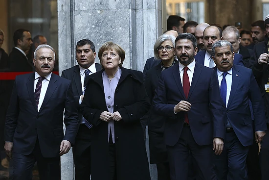 Merkel, TBMM'ye gelişinde Meclis Başkanı Vekili Ahmet Aydın tarafından karşılandı.