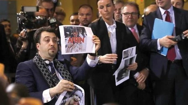 Toplantı esnasında Afrin'den olmayan yalan fotoğraflarla kara propaganda yapmaya çalışan sözde gazetecinin Armanc Agid Nerweyi olduğu belirlendi.