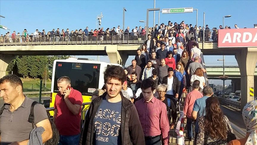 İşe gitmek için metrobüs kullanmak isteyen İstanbullular yaya üst geçidi ve metro çıkışlarına varan uzun kuyruklar oluşturmaya devam etti.