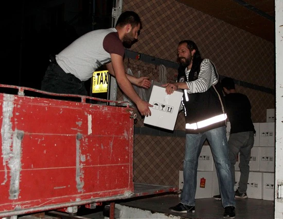 Polis, el konulan içkileri kamyonlara yükleyerek götürdüğü emniyete yük asansörüyle taşıdı.