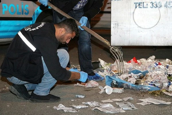 Ömer Alsancak'ın haber vermesi üzerine olay yerine polis ekipleri sevk edildi. Ekipler olay yerindeki 3 çöp konteynerini boşaltarak inceleme yaptı.