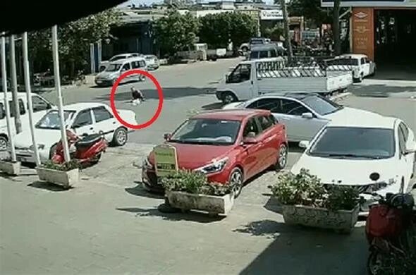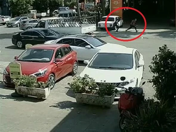 Görüntülerde, şüphelilerden C.S.'nin seyir halindeki otomobilden atlaması ve yerde yuvarlandıktan sonra elindeki poşetle kaçmaya çalışması ve polis ekiplerince yakalanması anbean görülüyor.