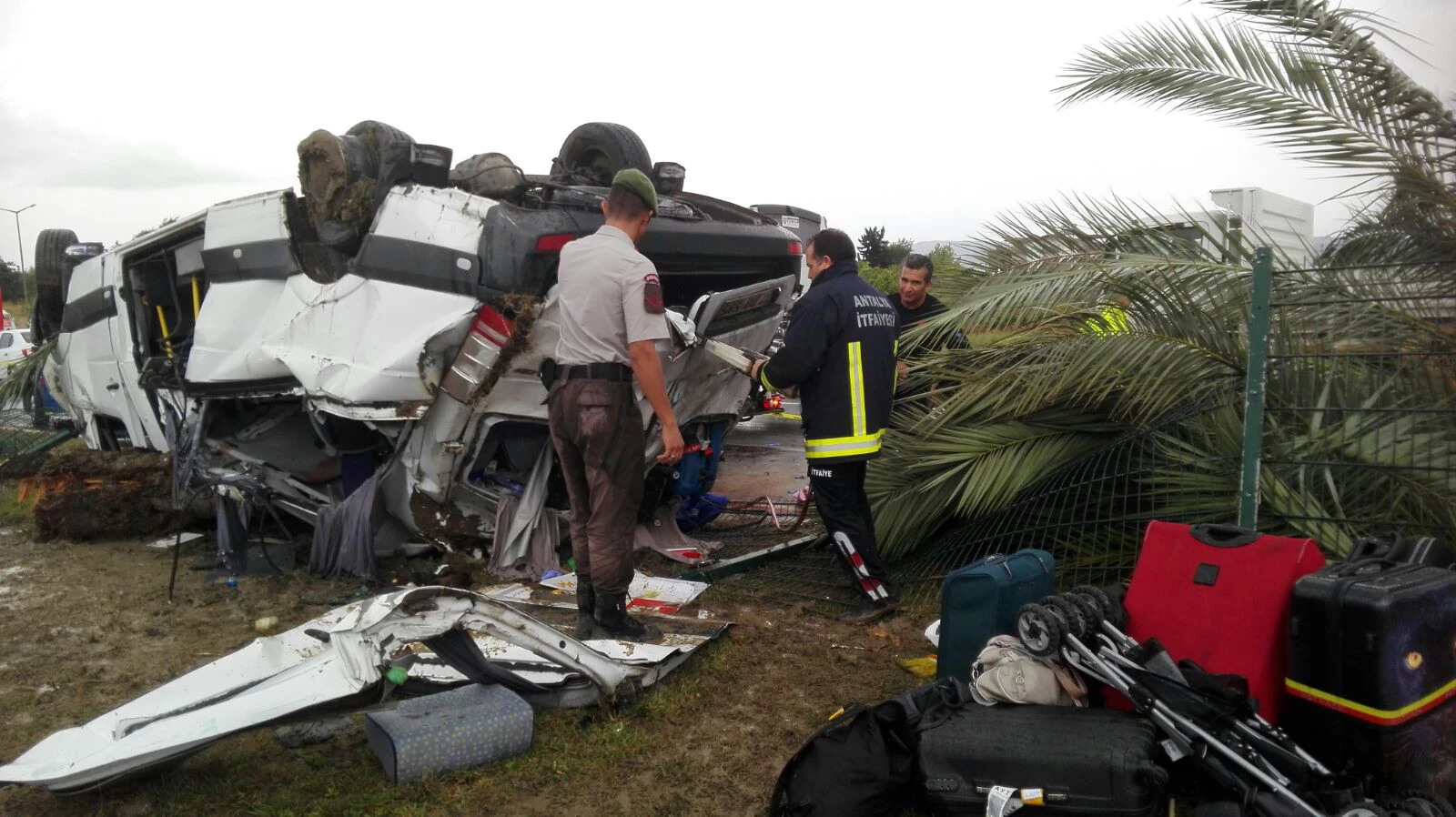 Edinilen bilgiye göre, Manavgat ilçesi D400 Karayolu Çolaklı kavşağı yakınında sürücüsünün ismi belirlenemeyen 02 DB 595 tur minibüsü şiddetli yağış nedeniyle direksiyon hakimiyetini kaybederek refüjdeki palmiye ağacına çarparak ters devrildi. Kazada, uyrukları belirlenemeyen çok sayıda turist yaralanırken, 2’si kadın 1’i erkek 3 turist araç içinde hayatını kaybetti. Kazanın ardından bölgeye çok sayıda ambulans sevk edilirken, yaralılar olay yerinde yapılan ilk müdahalenin ardından Manavgat’taki çeşitti hastanelere sevk edildi.