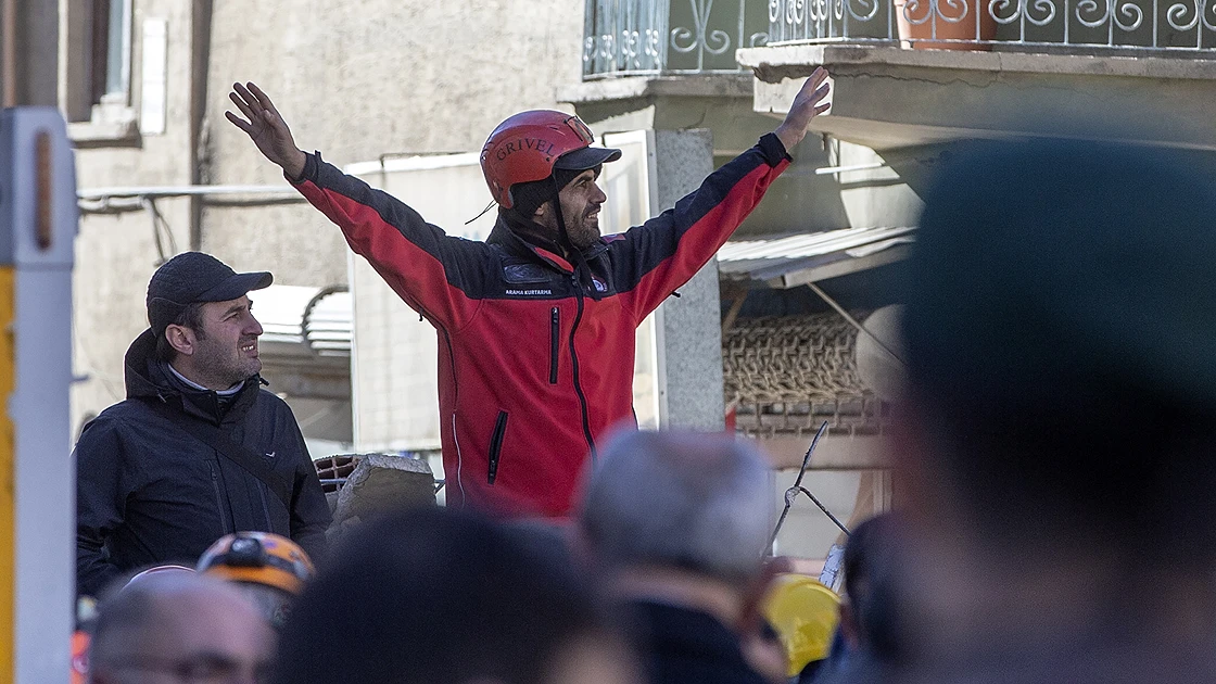 Yıkılan binanın enkazından iki kişi daha 14 saat sonra sağ çıkarıldı.