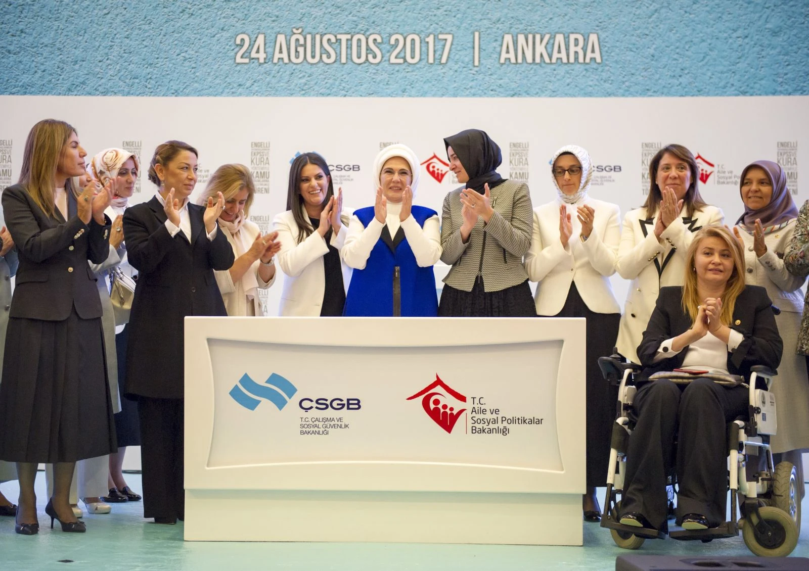 Cumhurbaşkanı Recep Tayyip Erdoğan'ın eşi Emine Erdoğan, engelli vatandaşların kamu kurum ve kurumlarına Engelli Kamu Personel Seçme Sınavı (EKPSS) ve kura yöntemiyle yerleştirilmesi için ATO Congresium'da düzenlenen törene katıldı.