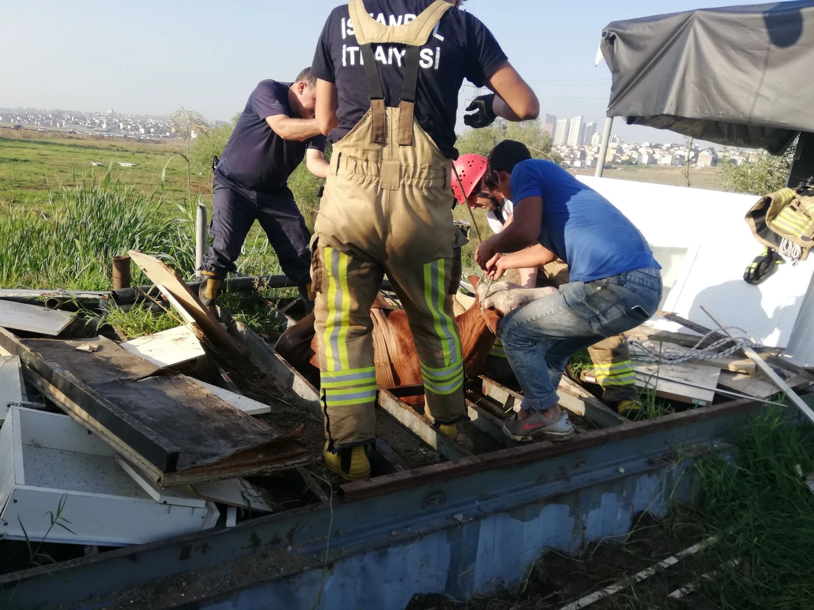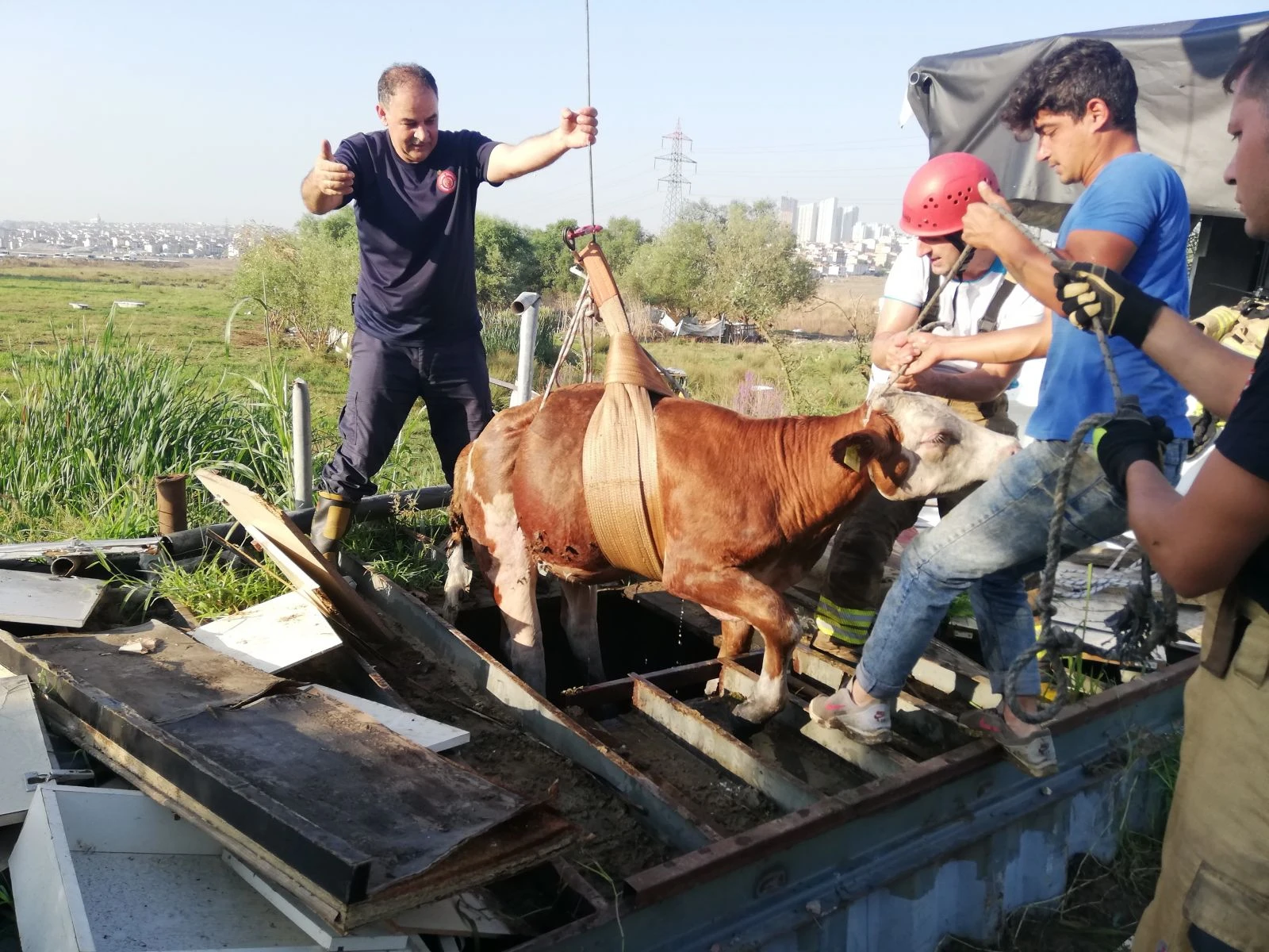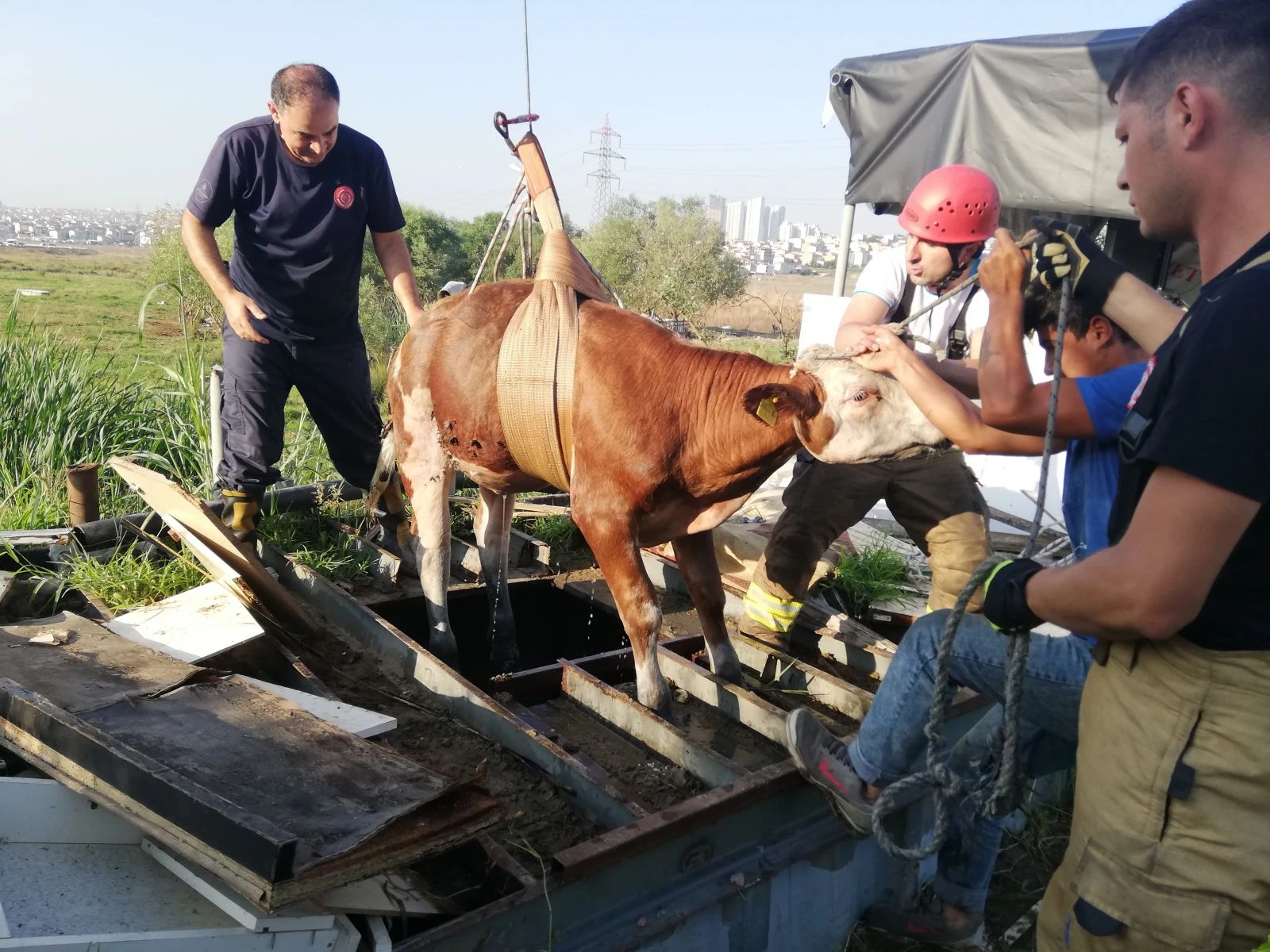 Olay, Avcılar Bahçeşehir Yolu'nda bulunan kurbanlık hayvan satış alanında yaşandı. Edinilen bilgiye göre, yaklaşık 300 kilo ağırlığındaki kurbanlık dana bağlı olduğu ipten kurtularak yaklaşık 5 metrelik su kuyusuna düştü. Hayvanın seslerini duyan sahibi itfaiye ekiplerine haber verdi. İtfaiye erinin su kuyusuna girerek dananın boynuna ve vücuduna halat bağlaması ve vinç yardımı ile kurbanlık hayvan kurtarıldı. Olay yerine gelen itfaiye ekipleri yaklaşık 45 dakikalık çalışmanın ardından hayvanı bağlı bulunduğu yerden çıkardı. Sahibi ve itfaiye ekipleri tarafından sağlık kontrolü yapılan hayvanın durumunun iyi olduğu öğrenildi.