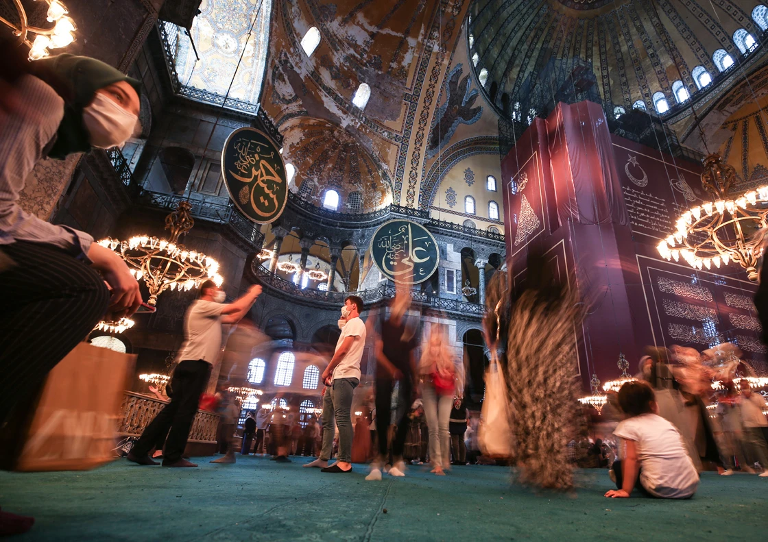 Öte yandan Ayasofya-i Kebir Camii'ne vatandaşlar ve turistlerin ziyaretleri devam ediyor.