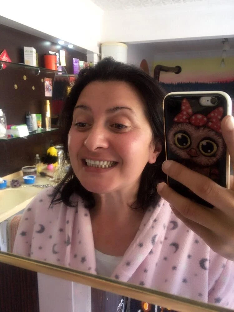 8 aylık tedavinin ardından protez dişlerin hazırlandığını ancak sinirlerin kesildiği bölgedeki ağrılar yüzünden kullanamadığını belirten Öztürk, 1,5 yıl aradan sonra gerçek dişleriyle olmasa da protez dişlerle tekrar aynanın karşısına geçti. Daha önce aynaya bakmaya korkan Öztürk, bu sefer gülücükler saçarak, "En azından dişler takıldı. Kullanamıyorum ama biraz daha rahatlattı beni. Her şeyi yiyemiyorum, yemeye gayret gösteriyorum. Şu anda gülüyorum. Dişlerim var. Ne kadar kullanamasam da dişlerimi takabiliyorum. Zorlanıyorum biraz ama yine de kullanmaya çalışıyorum. Aynaya bakıp da gülmek bile çok güzel. Kullanamasam da bu kadarı bile şimdilik yeter" ifadelerini kullandı.