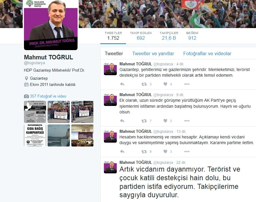 Ayyıldız Tim geçtiğimiz günlerde, HDP Eş Başkanı Figen Yüksekdağ'ın resmi Facebook hesabı başta olmak üzere HDP Van Milletvekili Lezgin Botan'ın da sosyal medya hesaplarını hacklemişti. İşte HDP Gaziantep Milletvekili Mahmut Toğrul'un Twitter hesabından atılan o tweetler;