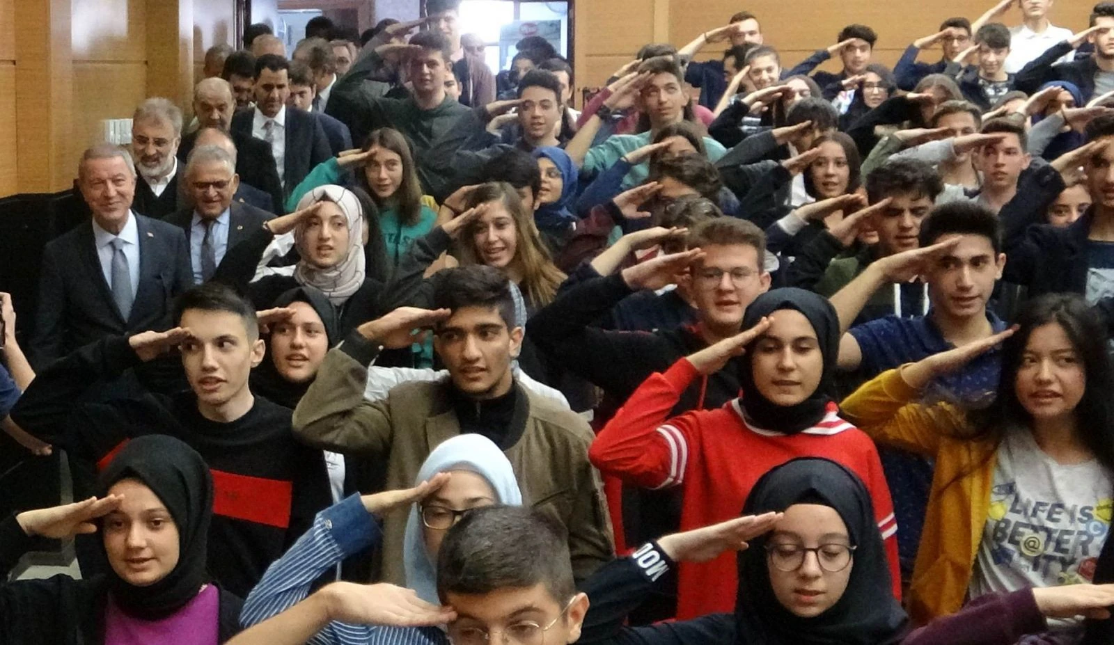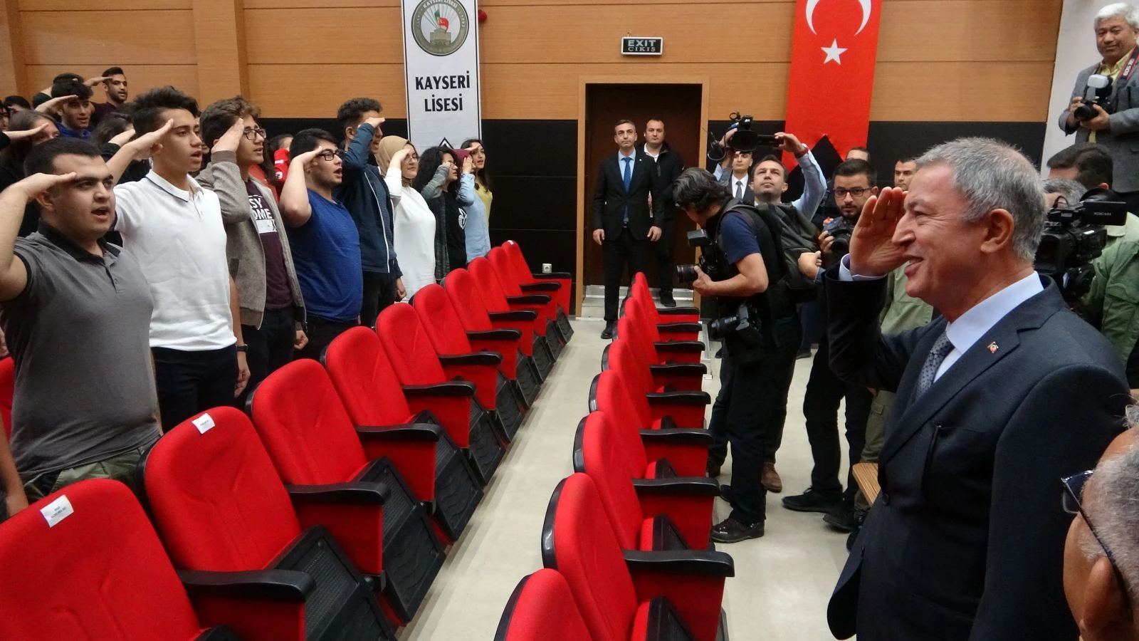 Bakan Akar'ın salona girişi anons edildiği sırada öğrenciler ayağa kalkarak Bakan Akar'ı asker selamı ile karşıladı ve Kayseri Lisesi Marşı'nı okudu. Bakan Akar da öğrencilerle birlikte marşın bir bölümünü okudu.