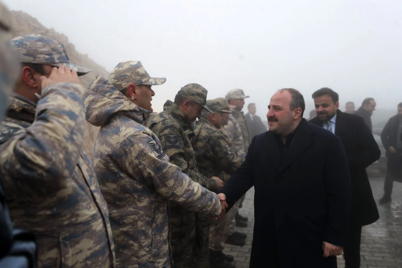 Bakan Varank, sosyal medya hesabından Suriye sınırında Mehmetçiğe ziyaretinin fotoğraflarını “Destanlar yazan kahraman Mehmetçiğimizle birlikte Suriye sınırındayız. Allah ordumuzu muzaffer kılsın” yazısıyla paylaştı.