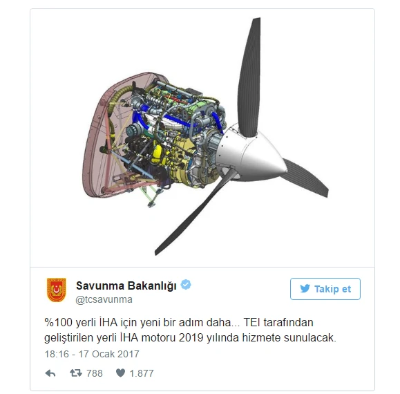 Milli Savunma Bakanlığı konu ile ilgili olarak geçtiğimiz günlerde Twitter hesabından açıklama yaptı. Yerli İHA motorunun 2019 yılında hizmete sunulacağı belirtildi.