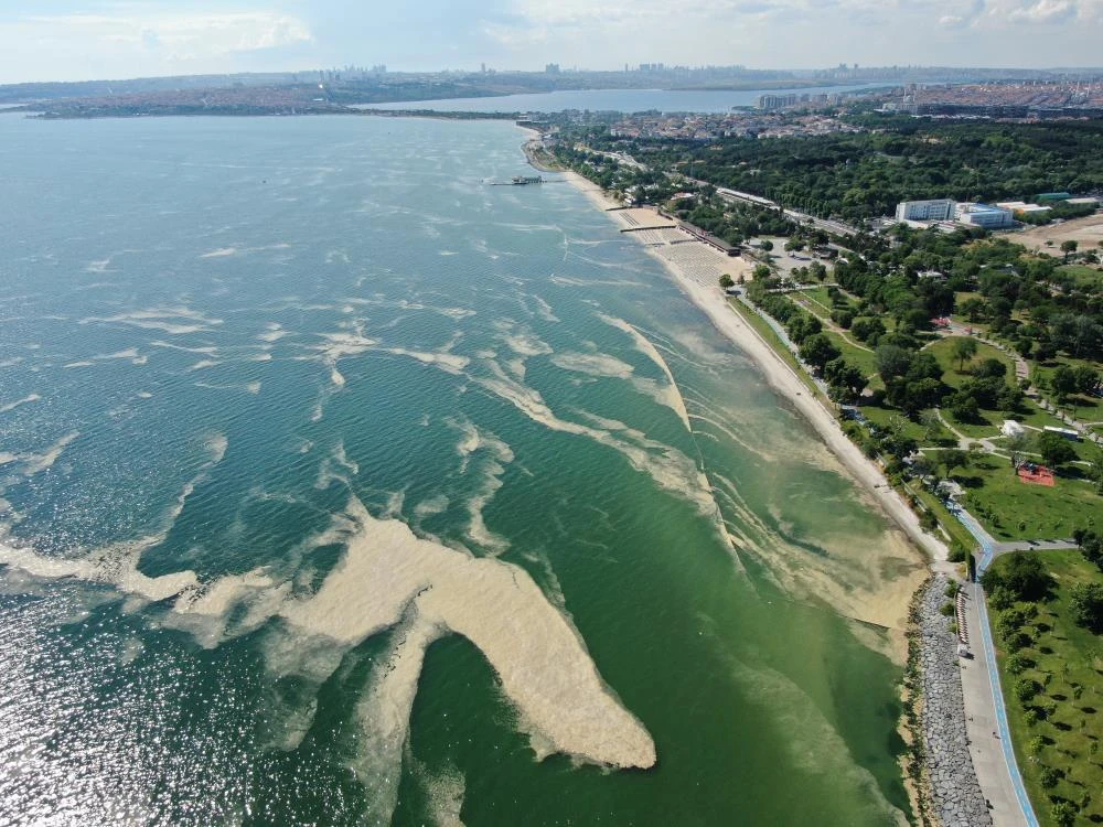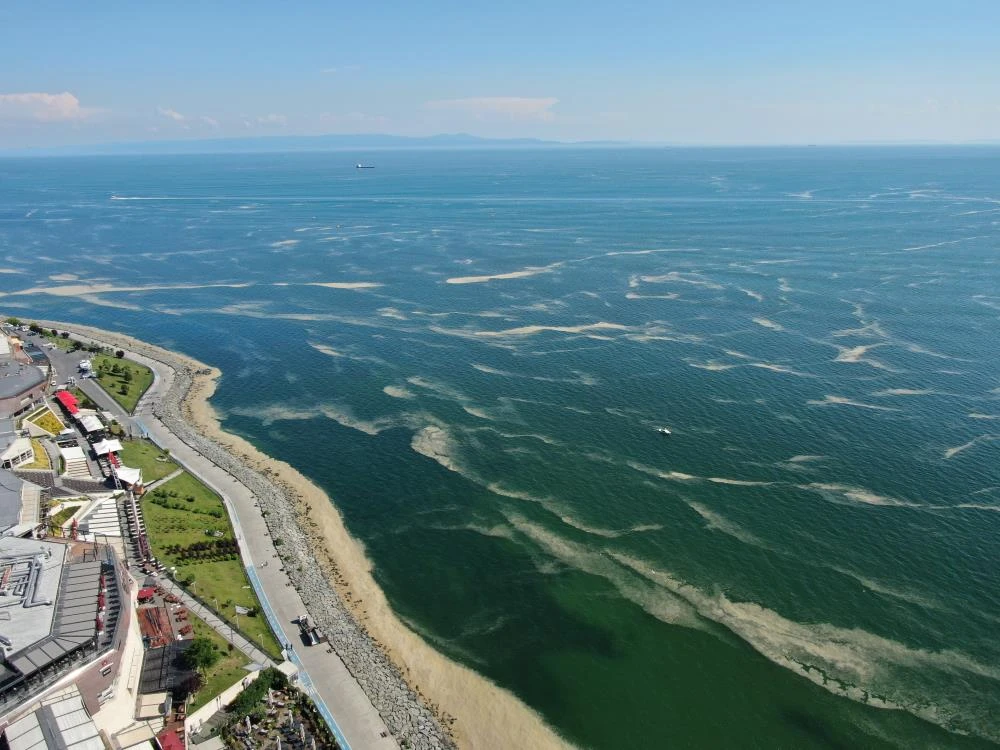 Marmara Denizi'ndeki müsilaj artarak etkisini sürdürürken son olarak Bakırköy kıyıları drone sayesinde havadan görüntülendi. Müsilaj olarak bilinen deniz salyası kıyı kesimlerini sardı.