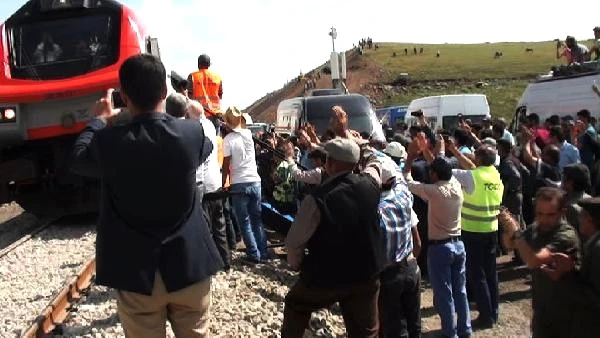 Bakü-Tiflis-Kars demiryolu hattının geçtiği treni ilk kez görmek için yollara dökülen Ardahan'ın Çıldır İlçesi'nde bulunanlar, Ulaştırma, Denizcilik ve Haberleşme Bakanı Ahmet Arslan'ın da içerisinde olduğu treni alkışlarla karşıladı.