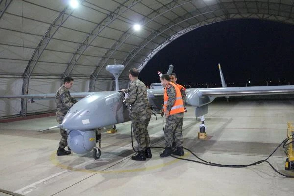 Üs Komutanlığı'ndaki İnsansız Uçak Sistemleri envanterindeki 'gözcü insansız hava araçları' terörle mücadelede aktif bir şekilde görev alırken, görevliler, 'TSK'nin vurucu gücü. 7-24, 365 gün görevde' yazılı kolluklarla yılbaşı gecesini görevlerinin başında geçirdi.