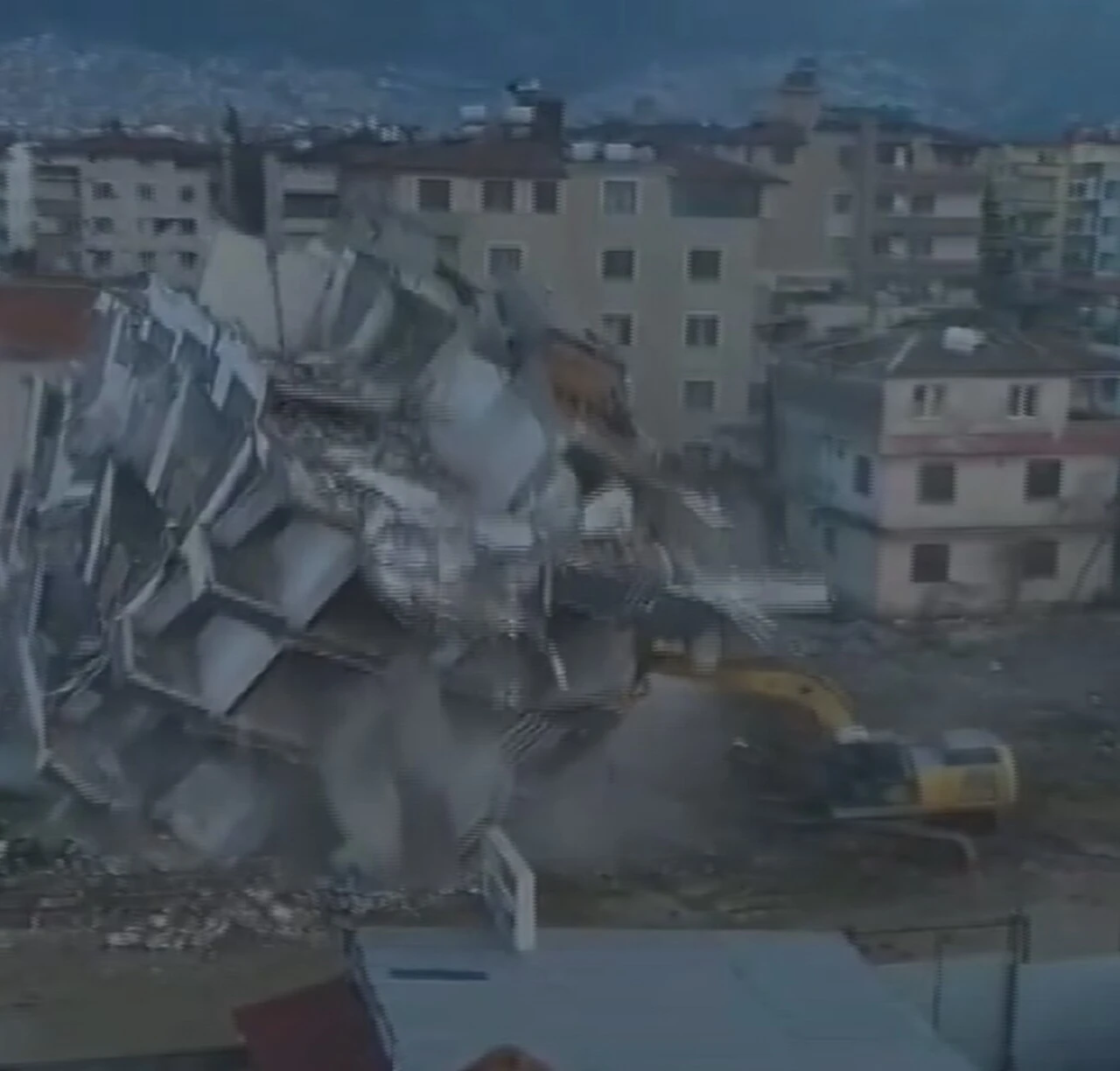 Hatay’da yıkım esnasında 5 katlı bina iş makinasının üzerine çöktü, operatör ise son anda canını kurtardı. Korku dolu anlar cep telefonu kamerasına yansıdı.