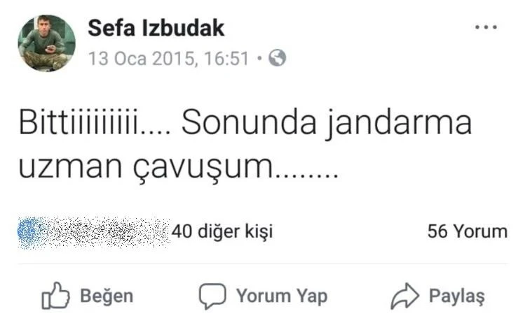 Bitlis kırsalında devam eden operasyonlar sırasında PKK’lı döşediği el yapımı patlayıcının (EYP) infilak etmesi sonucu şehit düşen 26 yaşındaki Jandarma Uzman Çavuş Sefa İzbudak’ın memleketi Adana’nın Pozantı ilçesindeki baba evine şehadet haberi verildi.