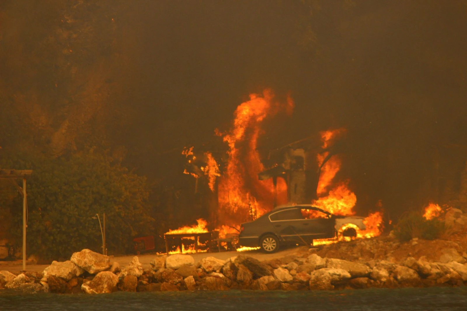 Muğla’nın Bodrum ve Milas ilçelerinde başlayan yangınlar birçok yere sıçramış durumda. Bölgede bazı otellerin yanı sıra bazı mahalleler de tahliye edildi. Yangının etkisini arttırması üzerine beton şirketlerine ait 30 mikser ile 5 polis TOMA’sı söndürme çalışmalarına destek oluyor. Yangının iyice şiddetlenmesi ve etrafı saran dumanlar nedeniyle mahalle sakinlerinin deniz yoluyla tahliyesine başlandı. Tam bir seferberlik ilan edilen bölgede lüks yatların botları, günübirlik gezi ve balıkçı tekneleriyle İnce Yalı mevkiinden vatandaşların güvenli bölgelere tahliyesine devam ediliyor