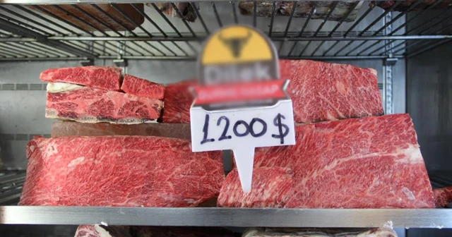 İzmir’in Torbalı ilçesinde bir kasap dükkânında satılan sığır eti, fiyatıyla dudak ısırtıyor. Japon ırkı ‘Wagyu’ cinsi sığırından elde edilen ‘Kobe’ eti 1.200 dolara (10 bin TL) satılıyor. Türkiye’de de yetiştirilebilen bu sığır, özel karışım yemlerle ve uygun hava şartlarında büyütülüyor.
