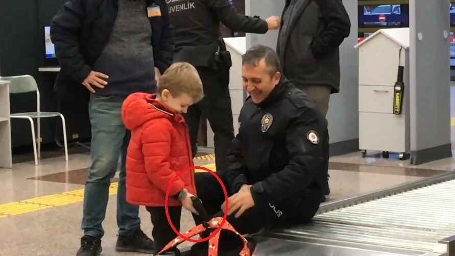 Babaannesi ve dedesini kutsal topraklara Umre yolculuğu için uğurlamaya Yenişehir Havaalanı'na gelen 6 yaşındaki Selim Köse, sırtındaki çantasını X Ray cihazına koyup geçiş yaptı. Röntgeni çekilen çantanın içerisindeki silahları farkeden polis sistemi durdurup çantayı gözetim altına aldı.