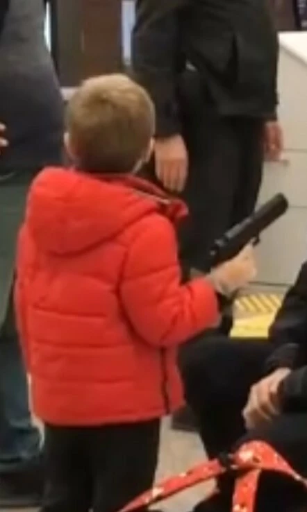 Çanta açıldığında içerisindeki silahların oyuncak olduğunu anlayan görevliler küçük çocuk ile birlikte uzun süre güldüler. Silahlarını polise gösteren küçük Selim bir süre polis amcalarıyla oynayıp daha sonra yakınlarını yolcu etti.