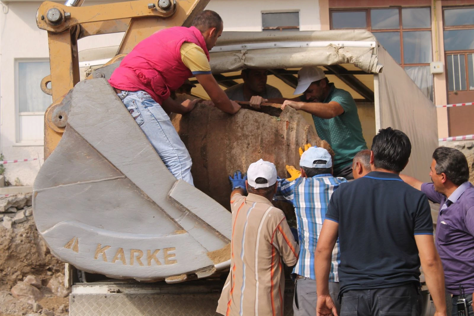 Zopturoğlu Camii hafriyat çalışmasının yapıldığı bugünlerde çalışmalar sırasında toprak altından çıkan dev küp ise görenleri heyecanlandırdı. Toprağı kazan kepçe operatörü, iş makinesinin kovasının bir cisme çarptığını fark etti. İş makinesinin motorunu durduran operatör, kepçeden inerek hafriyat alanında bulunan işçilerle birlikte küpü çıkardı. Olay yerine gelen yetkililer, yaklaşık üç insan boyunda olan küpü üstü kapalı bir arabaya yükleyerek kazı alanından uzaklaştırdı.