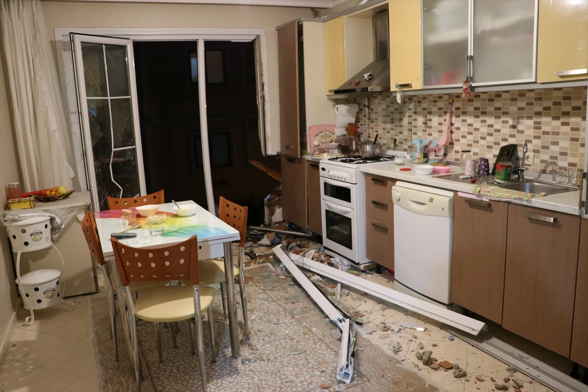 Alınan bilgiye göre, Merkez Mahallesi Kaşıkotu Sokağı'ndaki binanın uçan çatısından kopan parçalar, aynı sokaktaki başka bir binanın dış cephesine çarptı. Parçalar, dairenin mutfak kısmından içeri girdi.