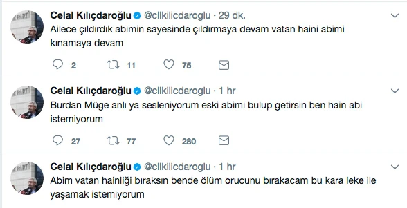 Adalet pankartıyla İstanbul'a yürüyen Kılıçdaroğlu'nu eleştiren Celal Kılıçdaroğlu, " Teröristleri serbest bırak diyen bir abim var Allah kahretsin" diye yazdı.