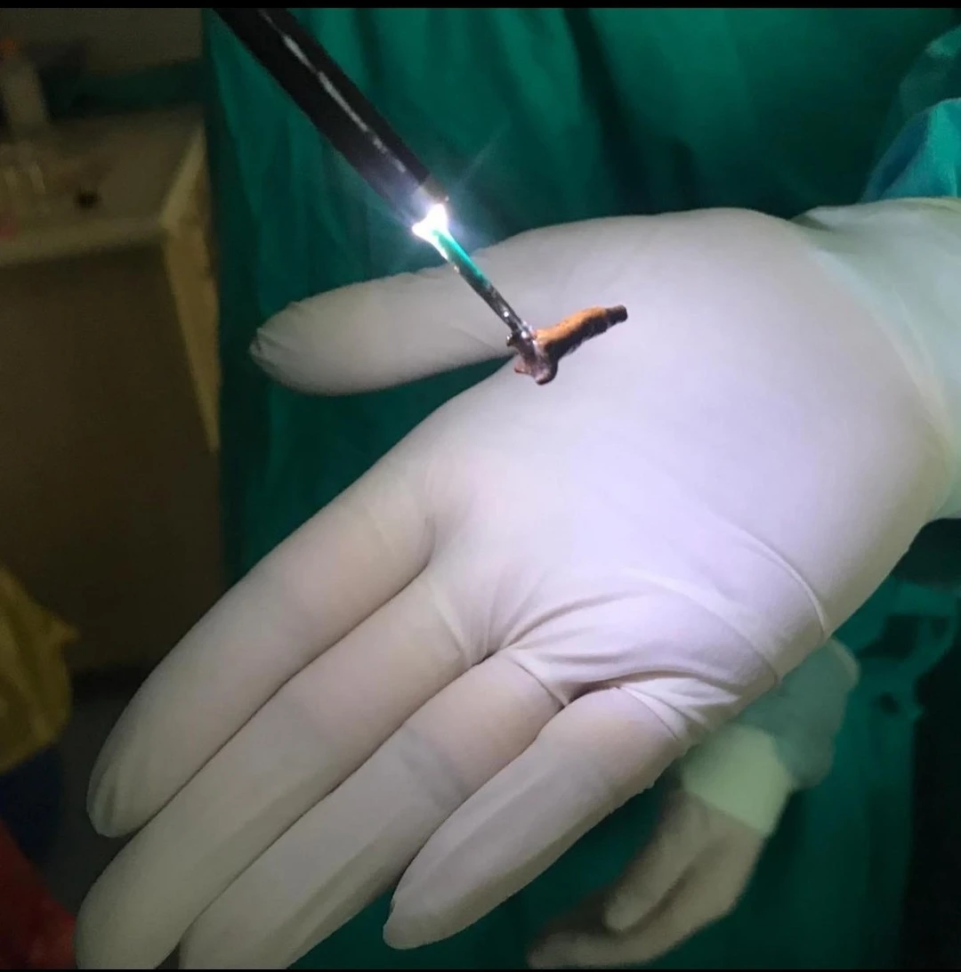 Görüntüleme sonucu tanıyı desteklemekteydi. Bu bulgularla hastaya hem kesin tanı hem de tedavi amacıyla Göğüs Hastalıkları Bronkoskopi Ünitesinde bronkoskopi işlemi yapıldı. Sağ akciğer alt lob bronşunda kahverengi yabancı cisim olduğu görüldü ve gerekli malzemeler kullanılarak yabancı cisim (karanfil ) bulunduğu noktadan çıkarıldı. Hastanın tipik anamnezi ve fiziki muayene bulgusu tanı koymamızda kolaylık sağlamış olup şüpheci yaklaşım ve erken tanı ve tedavisi sağlanmıştır” dedi.