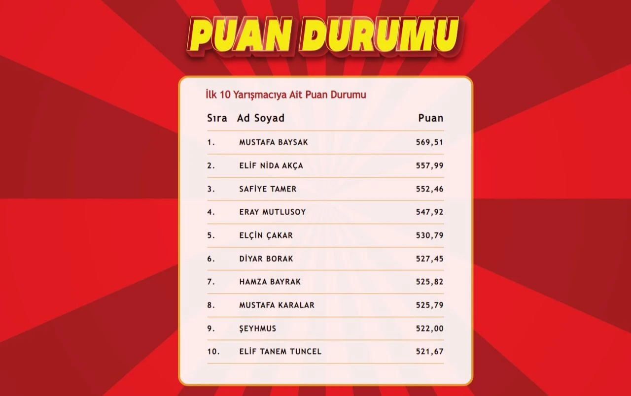 ” programına katılan yarışmacılar arasında birinci olan ve ilk on sıraya giren isimlerin listesiyle birlikte cevap anahtarları da  tgrthaber.com ve sosyal medya hesaplarımızdan paylaşılıyor.