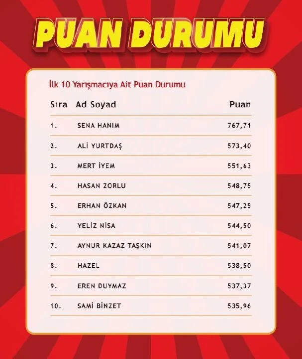 ” programına katılan yarışmacılar arasında birinci olan ve ilk on sıraya giren isimlerin listesiyle birlikte cevap anahtarları da  tgrthaber.com ve sosyal medya hesaplarımızdan paylaşılıyor.
