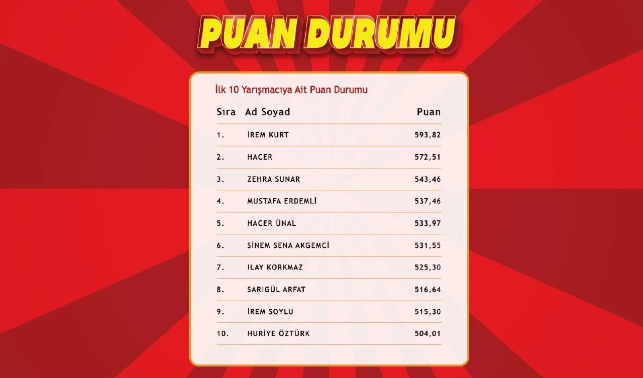 ” programına katılan yarışmacılar arasında birinci olan ve ilk on sıraya giren isimlerin listesiyle birlikte cevap anahtarları da  tgrthaber.com ve sosyal medya hesaplarımızdan paylaşılıyor.