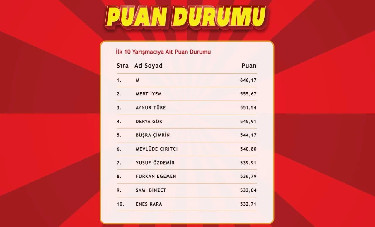 11 EYLÜL 2024 TARİHLİ ÇÖZEN KAZANIR’DA İLK 10’A GİREN YARIŞMACILARIN İSİMLERİ
