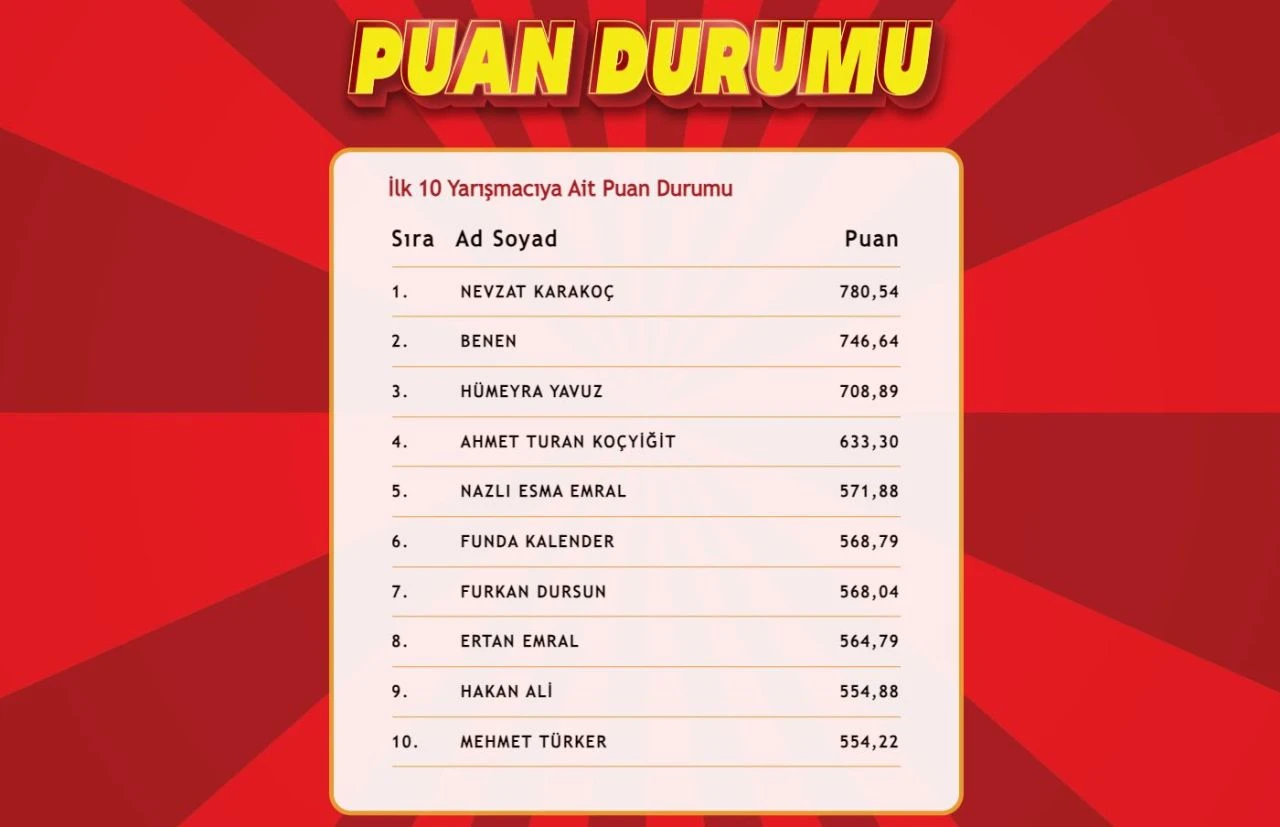 15 EKİM 2024 TARİHLİ ÇÖZEN KAZANIR’DA İLK 10’A GİREN YARIŞMACILARIN İSİMLERİ