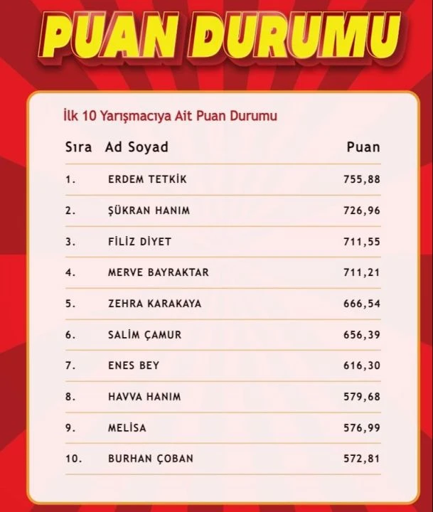 17 EKİM 2024 TARİHLİ ÇÖZEN KAZANIR’DA İLK 10’A GİREN YARIŞMACILARIN İSİMLERİ