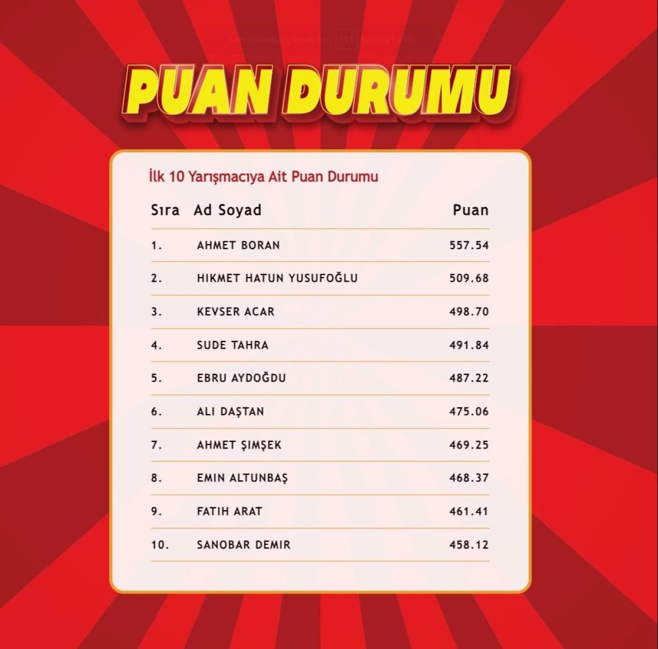 “Çözen Kazanır” programına katılan yarışmacılar arasında birinci olan ve ilk on sıraya giren isimlerin listesiyle birlikte cevap anahtarları da bir sonraki gün saat 12.00’da tgrthaber.com ve sosyal medya hesaplarımızdan paylaşılıyor.