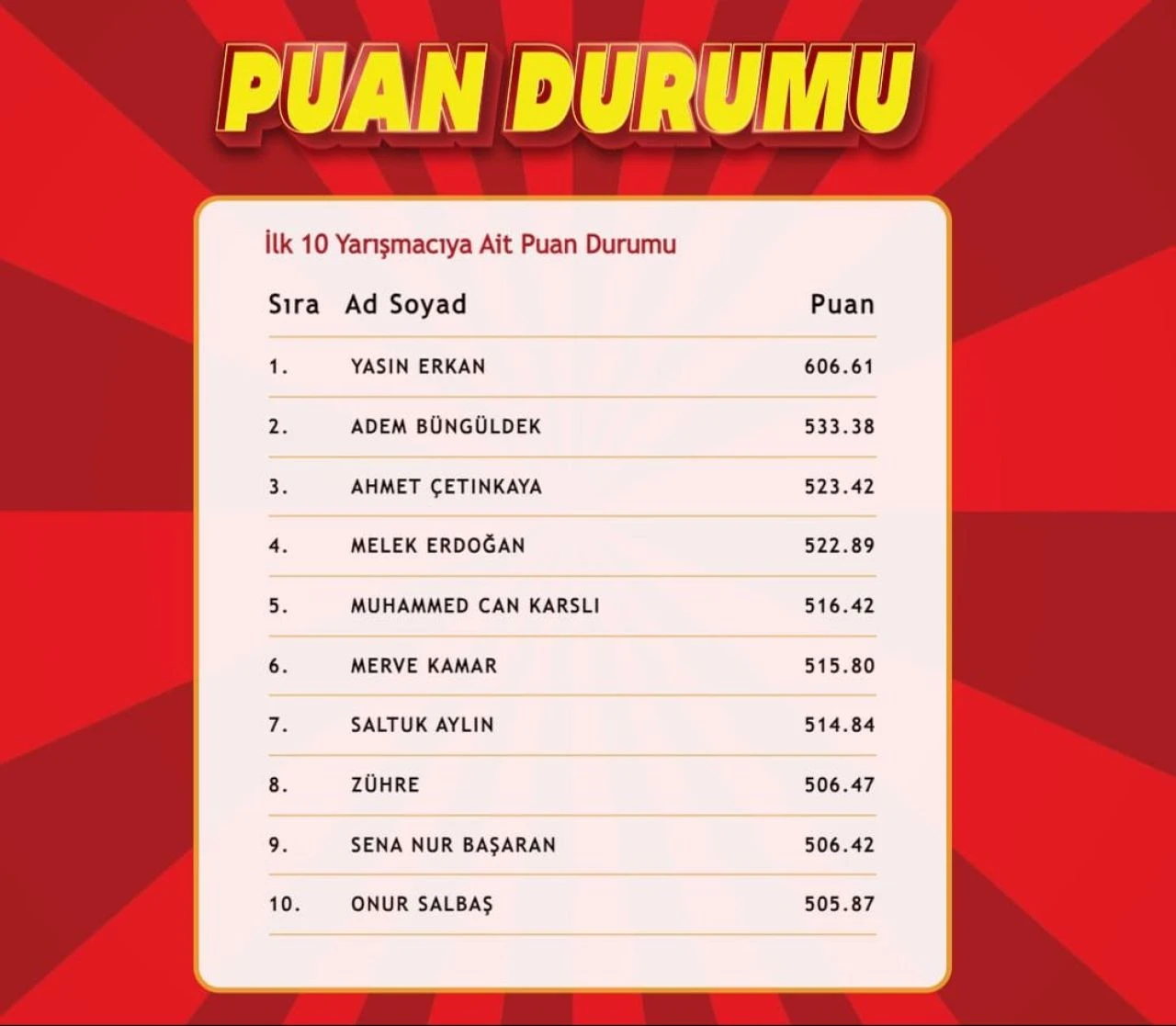 “Çözen Kazanır” programına katılan yarışmacılar arasında birinci olan ve ilk on sıraya giren isimlerin listesiyle birlikte cevap anahtarları da bir sonraki gün saat 12.00’da tgrthaber.com ve sosyal medya hesaplarımızdan paylaşılıyor.